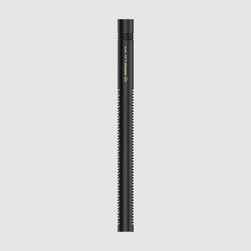 The NP10 is a super-cardioid directional microphone with an acoustic design that uses interfero-tube technology, making it sensitive to directional sound. The microphone effectively attenuates off-axis sound, meaning it is focused on capturing clean sound directly in front of it while reducing the noise from the side and the rear.