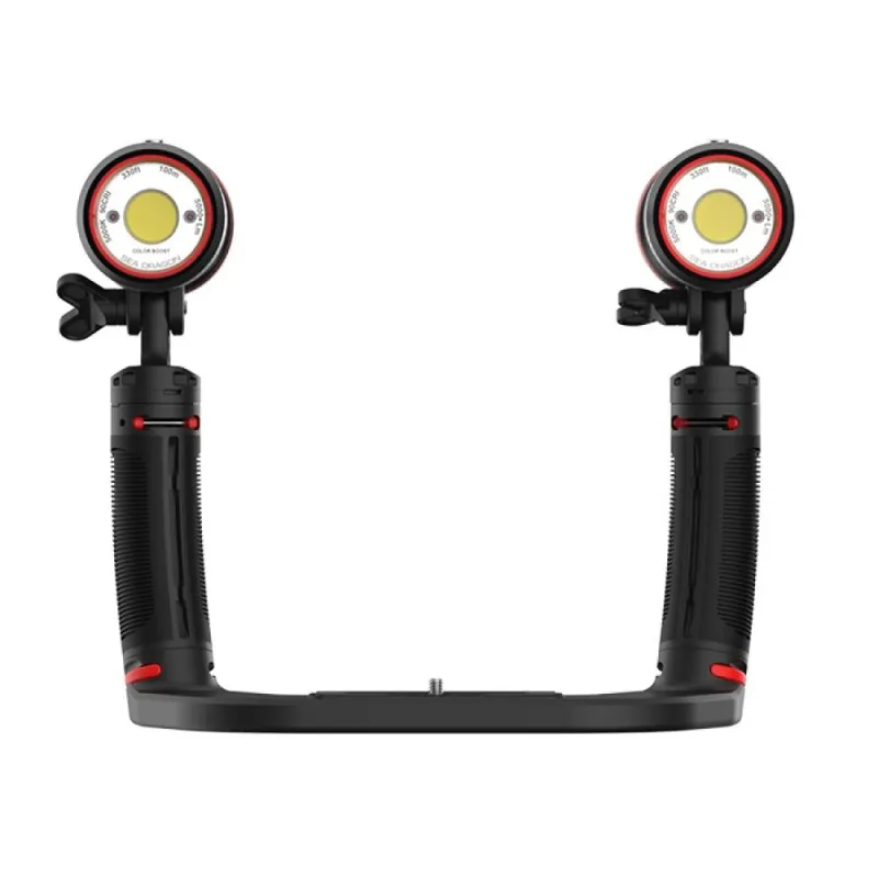Sea Dragon Duo 10K Color Boost zemūdens apgaismojuma komplekts nodrošina vairāk nekā 10 000 lūmenu ar divām Sea Dragon 5000 COB LED lampām uz Flex-Connect Ultra Dual paplātes. Tā ergonomiskie rokturi uzlabo stabilitāti, savukārt dubultās gaismas nodrošina plašāku staru kūļa leņķi.