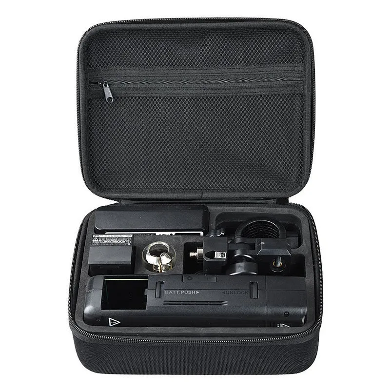 Godox Hard Case AD200 With this Godox Hard Case you can store or transport your Godox Witstro AD200 portable flash including accessories dust-free and safe. The inside of the bag is provided with custom-made cut-outs, so that the AD200 is optimally protected against impact or damage.