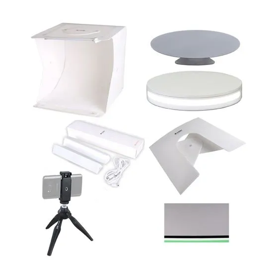 The Orangemonkie Foldio2 Complete Product Photography Set is a special offer, in which you have all the accessories you need to make the perfect 360 spin in one go, in addition to the mini turntable. Whether you are photographing jewelry, shoes, food, electronics or other objects: with this set you can capture it all perfectly! This set is compatible with your smartphone and DSLR. The dimensions of the Foldio2 Plus are 38x38x38 cm.