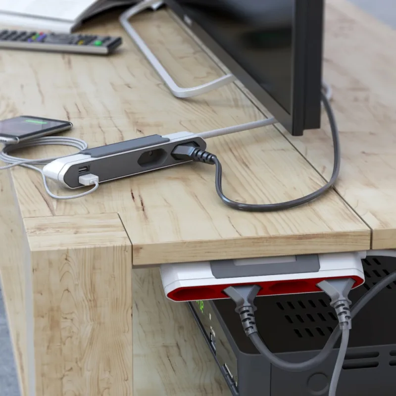 Элегантный и модный Allocacoc Powerbar станет прекрасным дополнением к вашему хобби или рабочему месту. Этот удлинитель имеет четыре гнезда для незаземленных вилок. В комплект поставки входит удобный кронштейн с клейкой полосой для подвешивания розетки под столом. Таким образом, четыре незаземленные розетки всегда будут у вас под рукой. Поскольку PowerBar имеет очень компактный дизайн, он также идеально подходит для использования в корпусе Hifi/TV, где часто не хватает места для стандартной розетки.