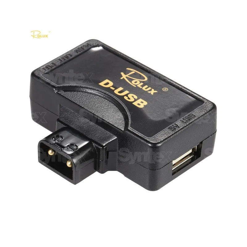 The D-USB adapter from Rolux is a handy tool that allows you to use accessories with a female USB-A connector and standard D-tap connector simultaneously with your V-mount battery. The D-USB adapter is suitable for any V-mount battery with D-tap connector. You simply connect the D-USB adapter to the D-tap connector, which has both a USB-A and D-tap port. The USB port output is 5V and up to 1.6A. Both the input and output of the D-tap are 11-17V and up to 10A.