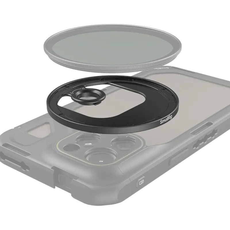 It is possible to attach a 67mm magnetic filter to the SmallRig mobile video cage or the rear plate of a lens equipped with an M-mount/T-mount.