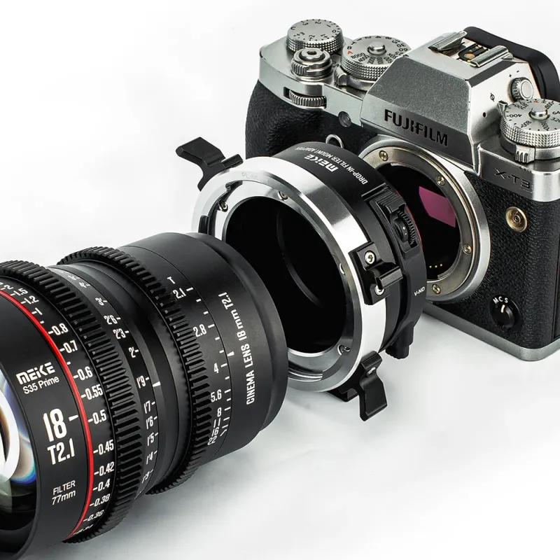 Адаптер Meike MK PLTX C Drop in Filter Mount позволет использовать камеры с креплением FUJIFILM X с кинематографическими объективами с креплением ARRI PL и включает систему фильтров Drop-in.