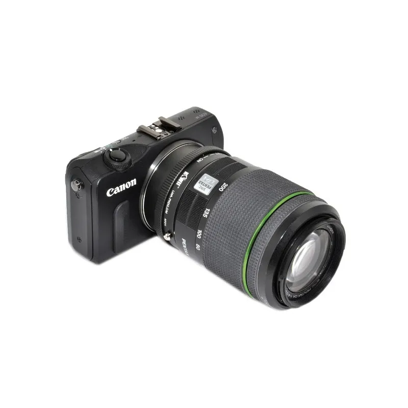С помощью адаптера креплени объектива Kiwi LMA-PK(A)_C/M вы можете использовать объектив с креплением Pentax K(A) на камере Canon EOS M. Адаптер изготовлен из черного анодированного алюмини (крепление дл корпуса камеры) и имеет серебрное латунное крепление дл объектива.