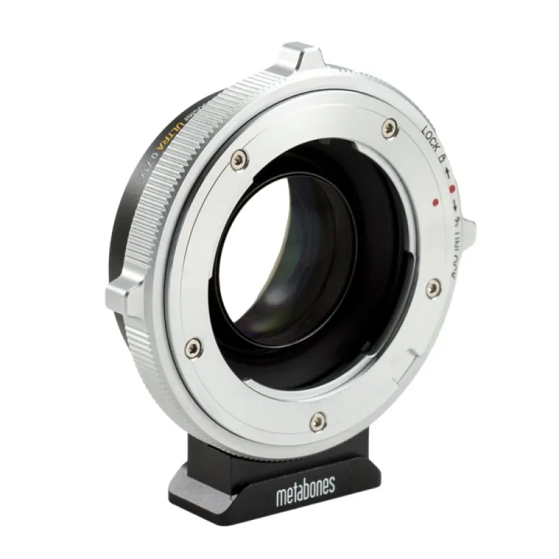 Like the revolutionary original Metabones Speed Booster announced in January 2013, the Speed Booster ULTRA has a magnification of 0.71x, and so it effectively reduces the crop factor of mirrorless cameras with DX-sized sensors, such as Sony E-mount and Fuji X-mount cameras, from 1.5x to 1.07x. However, the new ULTRA design makes very effective use of exotic materials at the furthest limit of glassmaking technology, and as a result is well corrected for use with virtually all full-frame SLR lenses regardless of exit pupil distance. Thus, the Speed Booster ULTRA performs extremely well with professional-grade f/2.8 zoom lenses such as the 24-70mm f/2.8 and 70-200mm f/2.8 zooms by Canon and Nikon to produce 17-50mm f/2.0 and 50-142mm f/2.0 high-speed zooms, respectively. Similarly, high-speed fixed focal length lenses such as a 50mm f/1.2 will be transformed into a 35.5mm f/0.9 lens with excellent contrast and resolution from the center all the way to the edges of the image.