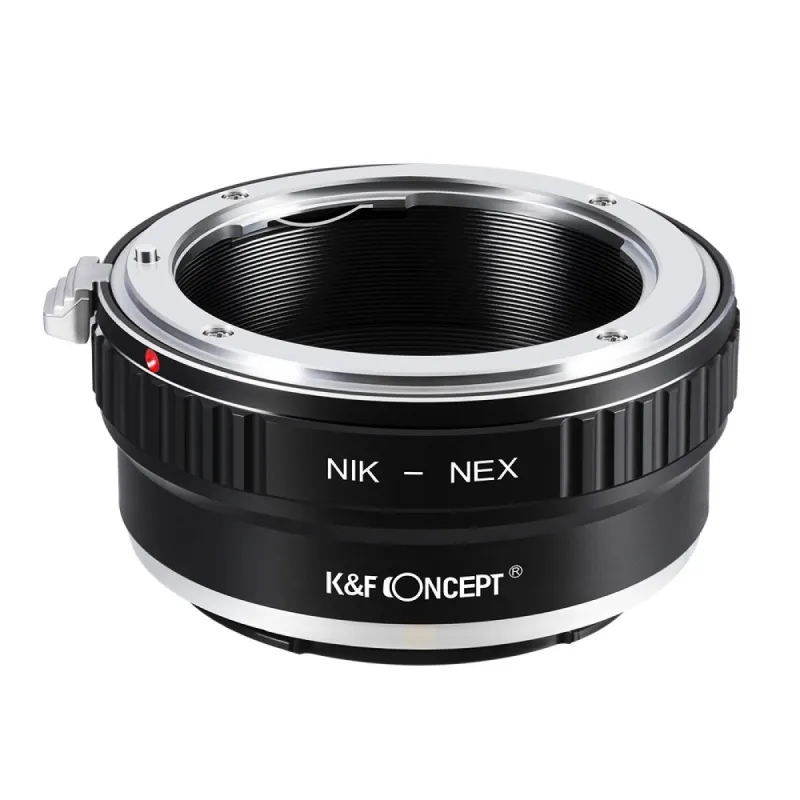 Nikon F mount lens adapter for Sony E NEX/Alpha camera body.