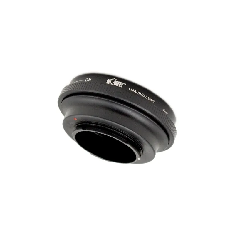 kiwi photo lens mount adapter lma-sm (a) _m4/3 The kiwi photo lens mount adapter lma-sm (a) -m4/3 offers the possibility to use Sony Alpha/Minolta AF Objectives on Micro Four Thirds Camera Bodies such as Panasonic G1, GH1, GF1, G10, G2, GH2, GF2 and Olympus PEN E-P1, E-P2, E-PL1 and E PL2. The adapter is made of refined bronze and finished with Chrome. On the LMA-SM (A) -M4/3 Mount Adapter there is an ON/OFF button for the aperture control ring to switch on the desired aperture. Although the lens can be physically attached to the body, the functions such as automatic aperture, auto-focus and/or other functions will not work. You can then take photos in the manual stand.