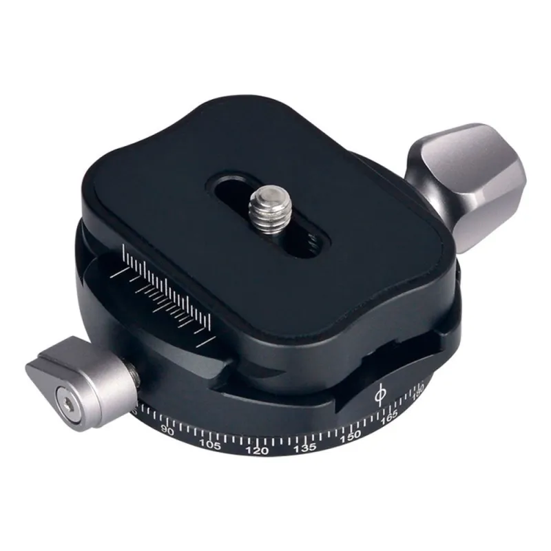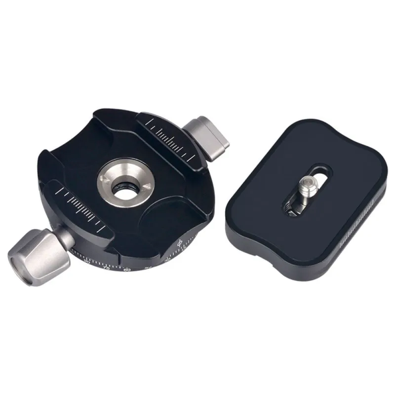 The Caruba Quick Release System - Panorama 3 (Grey) is provided with a smooth 360 degree rotation panning mechanism. The base rotates quickly and smoothly and can be locked with the small knob on the side. The Panorama 3 has an Arca-Swiss compatible quick release system for quick camera removal. The large rotary knob on the side locks the camera firmly in place.