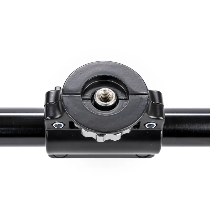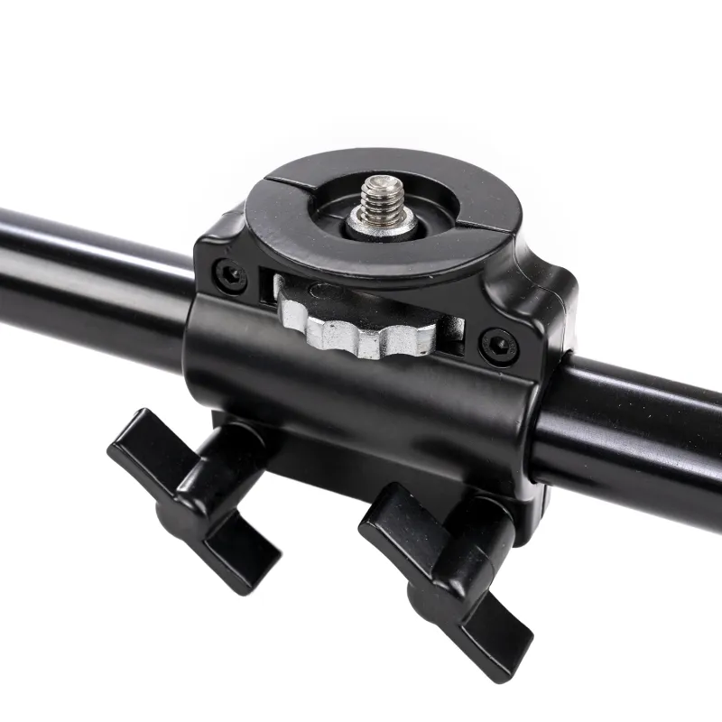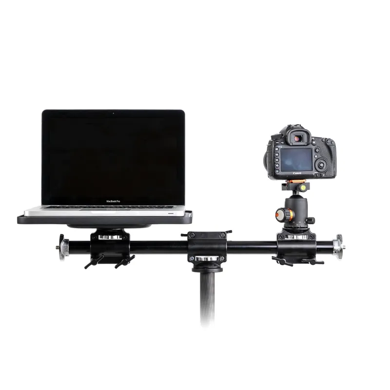 The Caruba Tripod Accessory Arm for Four Heads (60cm) mounts onto the center column of tripods, Light Stands or C-Stands with 3/8" threads. The platforms feature 3/8" screws, which allows accessories like Laptop-trays, Studio Lights or Ball Heads to be mounted on either or both sides. In addition, the horizontal bar features 3/8" screws on both ends, allowing mounting of accessories from the sides.