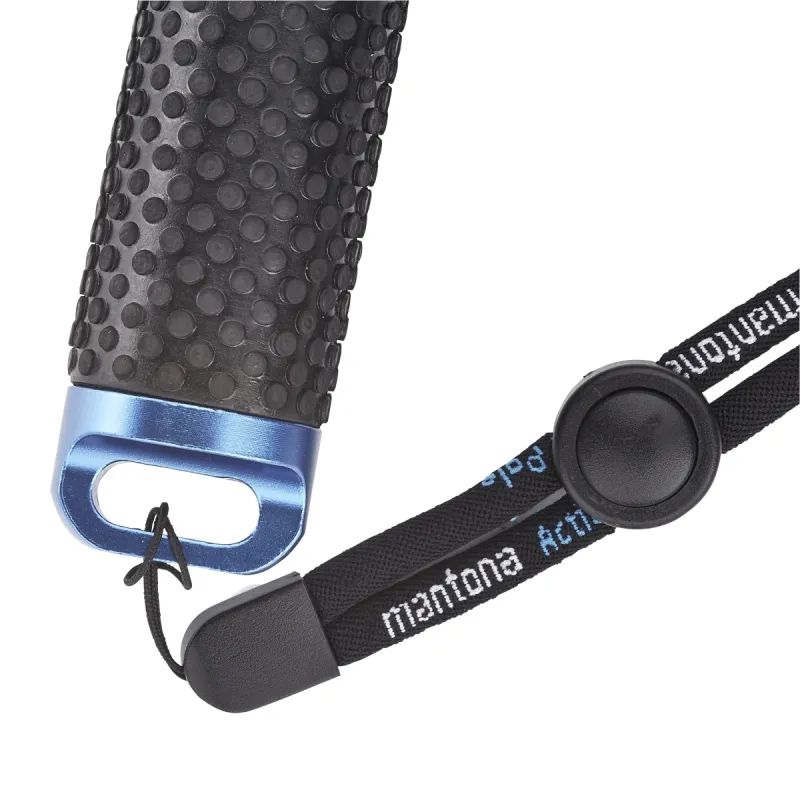 This telescopic extension pole by mantona is the ideal companion for filming or taking photos with your action cam. The very sturdy and high-quality hand tripod made from aluminium is infinitely adjustable up to 50 cm and is quick and easy to lock. Due to the low weight and the compact dimensions, it is very easy to transport and allows you to shoot from a variety of perspectives. The tripod is very well-made, it feels pleasant to use. The blue anodized handle is equipped with a bumpy rubber coating, ensuring a very secure grip. The tripod head has a standard GoPro mount to which GoPro Hero and Session as well as other action cams up to approx. 500 g can be attached via the frame or housing in seconds and then aligned. The hand strap stops your equipment from being dropped.