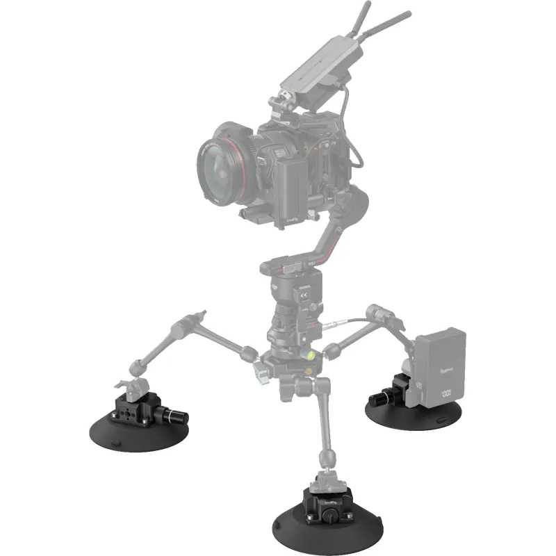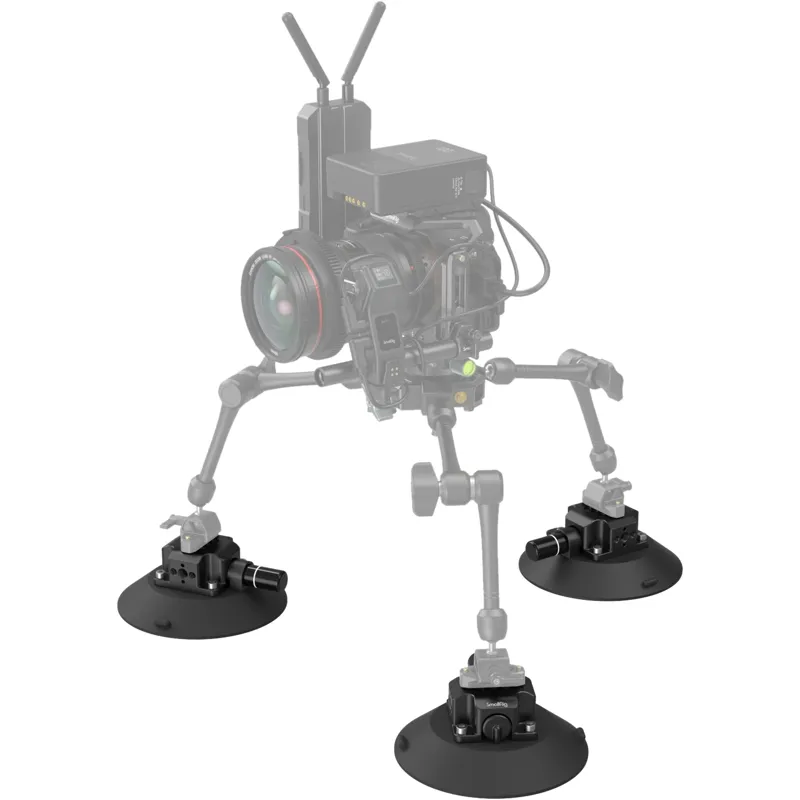 The aluminium-alloy suction cup camera mount comes with such accessory mounting points as 1/4"-20 threaded holes, 3/8”-16 threaded holes and ARRI 3/8"-16 locating holes for attaching SmallRig: 3757, 3873, 3874, 3875, 2906, 2070, 2115, etc.