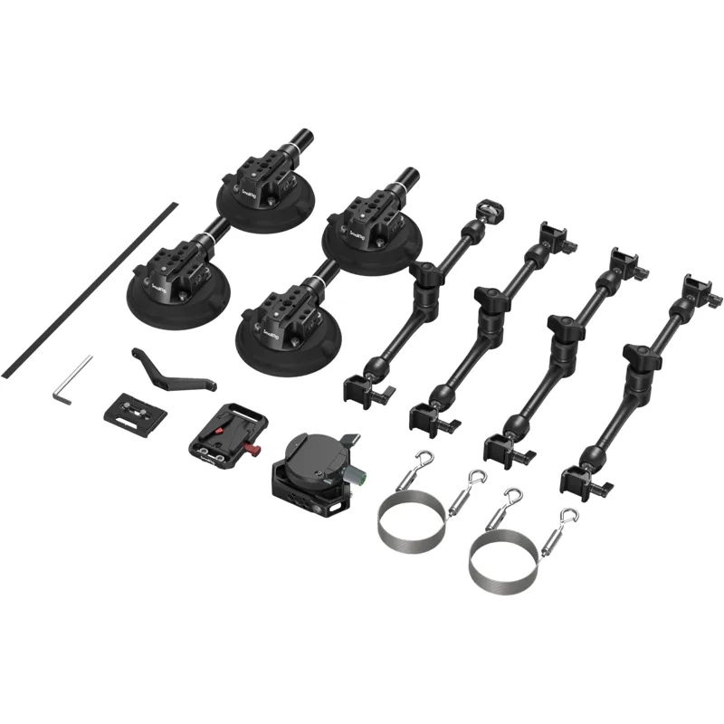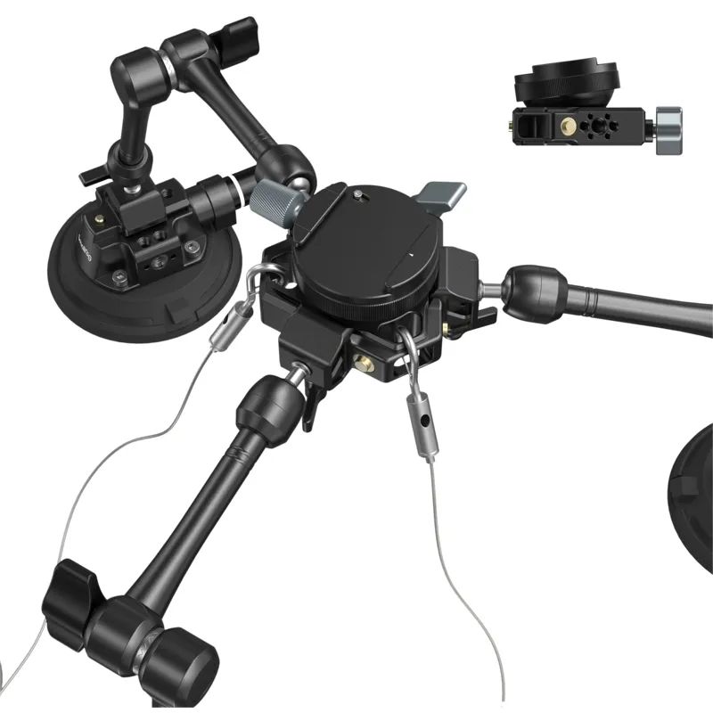 SmallRig 4-Arm Suction Cup Camera Mount Kit SC-15K 3565 представляет собой профессиональное и надежное решение для автомобильной или иной персонализированной съемки. Обладая мощной силой присасывания, крепление имеет максимальное горизонтальное присасывание 120 кг и максимальное вертикальное присасывание 30 кг. Крепление для камеры на присоске, обладающее высокой герметичностью и износостойкостью, может работать при температуре от -20 до 60°С, подходит для чистых, сухих, гладких и даже изогнутых поверхностей. В комплект входят 4 присоски, 4 11-дюймовых кронштейна, 1 опора для объектива, 1 полушаровая головка и 2 кабельных крепления.