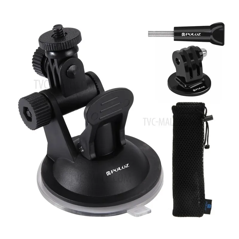 PULUZ PU51 Car Suction Cup Mount with Screw Tripod Mount Adapter Storage Bag for GoPro Hero 7/6/5, DJI OSMO Action Camera