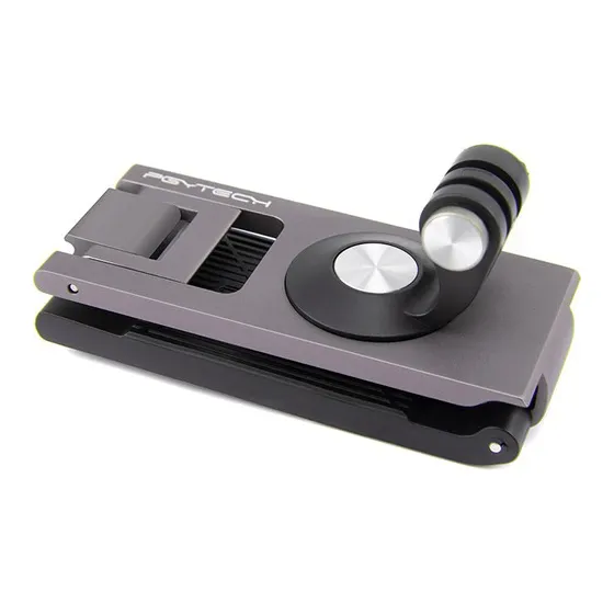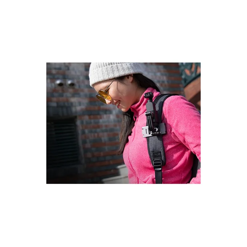 Fix your DJI Osmo Pocket or action camera to your backpack strap for POV shots or easy access with the Osmo Pocket & Action Camera Backpack Strap Clip from PGYTECH. Made in large part of aluminum and featuring a locking mechanism, it securely clips onto straps up to 0.4" thick and provides a three-prong mount on the outer surface. Onto this three-prong mount you can attach the DJI Osmo Pocket Accessory Mount, which holds the Osmo Pocket. Similarly, you can attach most action cameras.