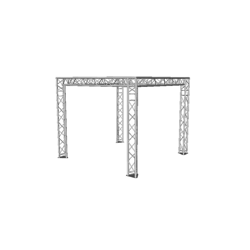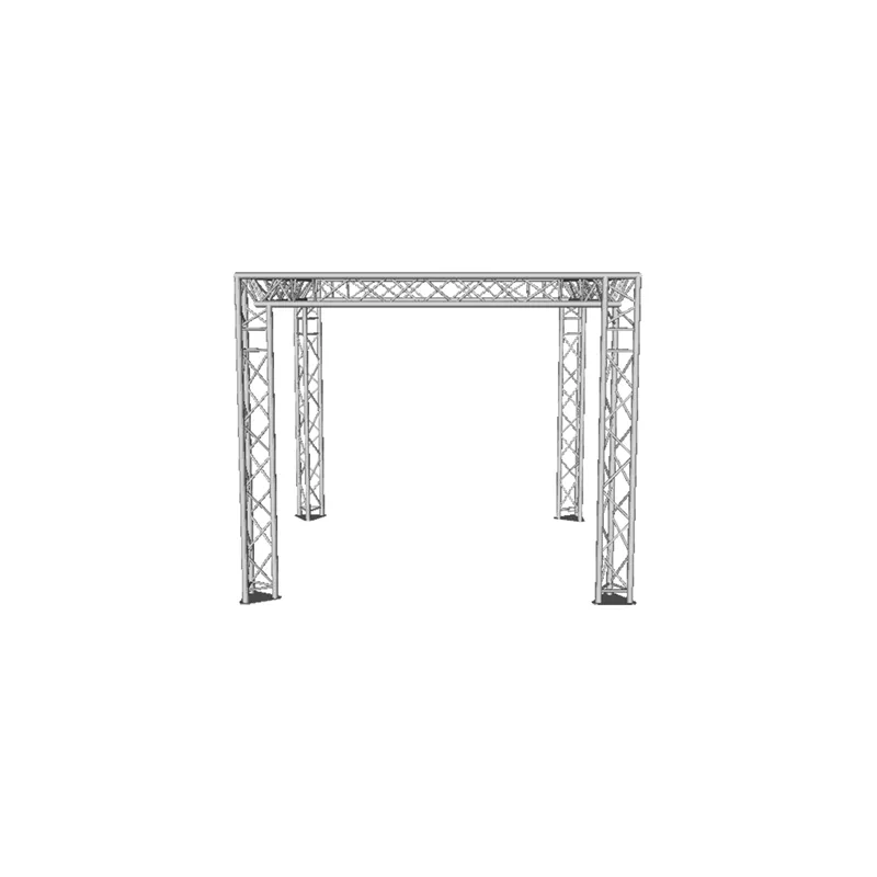 The Truss arch has a length of 3m, a width of 3m and a height of 3m. This makes it suitable for various applications, from small stages to fairs and weddings. The set comes complete with all accessories needed to connect the parts together. The structure is easy to assemble and disassemble using the included connectors, making it quick to set up and easy to transport.