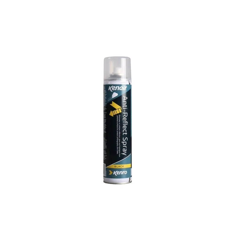;The Kenro Matt Anti Reflection Spray can be used to reduce the reflection and/or glare of objects such as cars, silver and glass, you wish to photograph. The spray is specifically designed for photography and the film industry and can easily be removed with a soft, clean cloth.