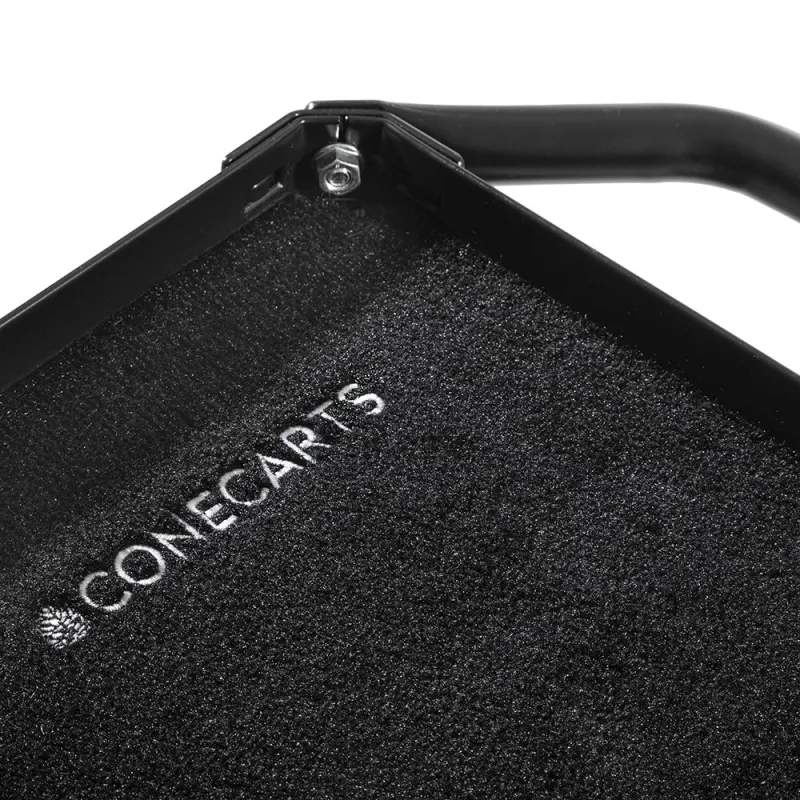 Each shelf has a black fabric mat with the ConeCarts® logo embroidered on it which guarantees greater protection of the cart and tools.