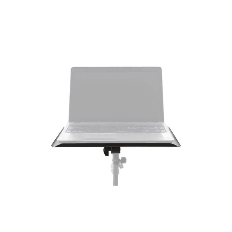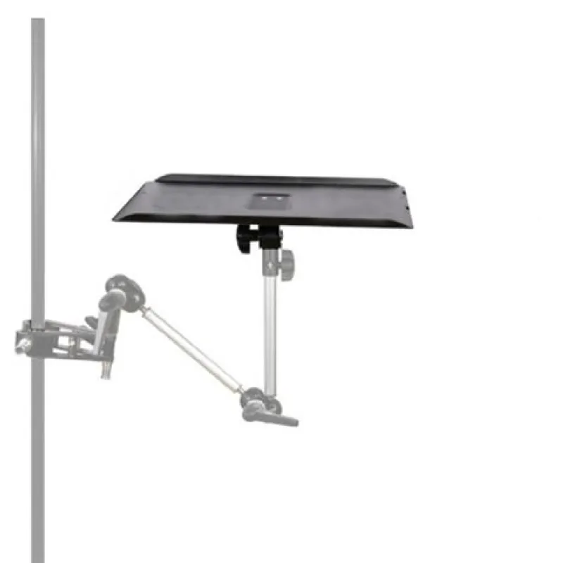 The StudioKing MC-1120-S laptop stand is a versatile and stable solution to use your laptop. You can place your laptop on the stand and secure it easily with the included Velcro for added security. Perfect for exhibitions, events and presentations! Moreover, the stand is not only suitable for your laptop, but also for other accessories such as a photo camera. In addition, the stand is not only suitable for your laptop, but also for other accessories. In combination with a tilting bracket and spigot adapter (available as an option), you can also tilt the plate and, for example, place a brochure or iPad on the edge. These can be secured using the supplied Velcro strap set.