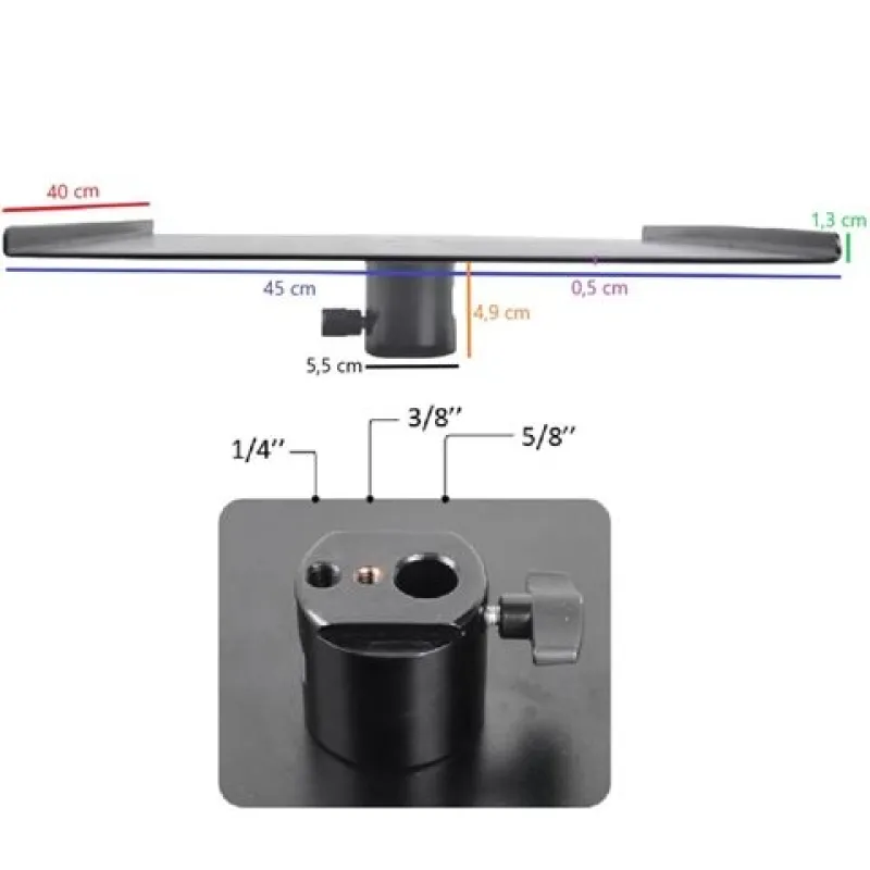 Compared to its predecessor MC-1020, this stand is 10 cm wider and 3 cm longer. This means that it now also offers space for the larger laptops, up to approximately 23 Inch. The Studioking MC-1120-S is equipped with three types of female threads: 1/4", 3/8" and 5/8". This allows you to place this stand on almost all stands (see optional accessories). In addition, the laptop holder also has an Arca Swiss connector on the underside, which makes it suitable for heads with this connection. The MC-1120-S weighs only 1.7 kg.