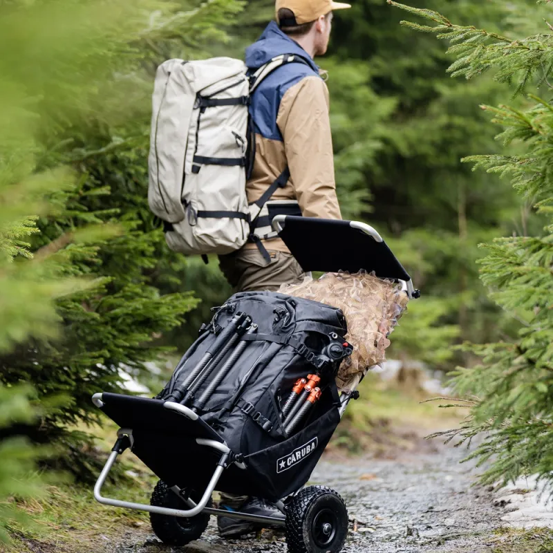 With the Caruba Pro Trolley I, you have a convenient trolley at your disposal, so you can transport your camera equipment in a comfortable way. It is very handy if you don't want to carry the heavy equipment by yourself. The trolley is made of sturdy, stainless aluminium and double-walled 600D nylon lining. It has a carry capacity of 90kg. This makes the trolley not only suitable for transporting your equipment but it can be used as a chair as well, ideal if you have a long shooting session at the sport field or in nature.