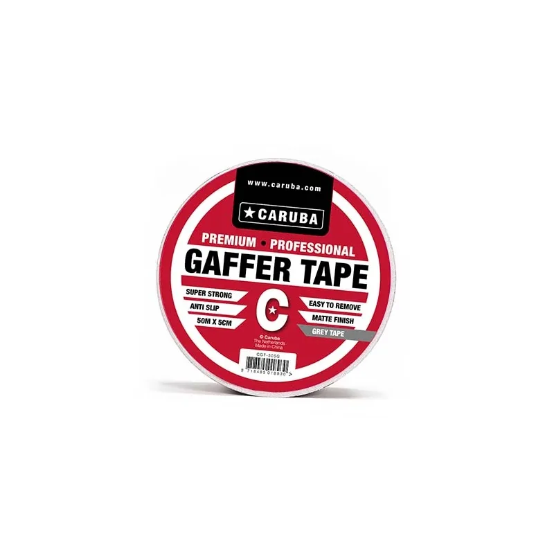 Caruba Gaffer Tape 50mtr x 5cm Grey is a super strong tape for securing cables and backdrops. The tape can easily be removed without leaving any traces when the job is done. The premium tape is non-slip and has a matt finish. The rol contains 50 metre grey tape with a width of 5 centimetre.
