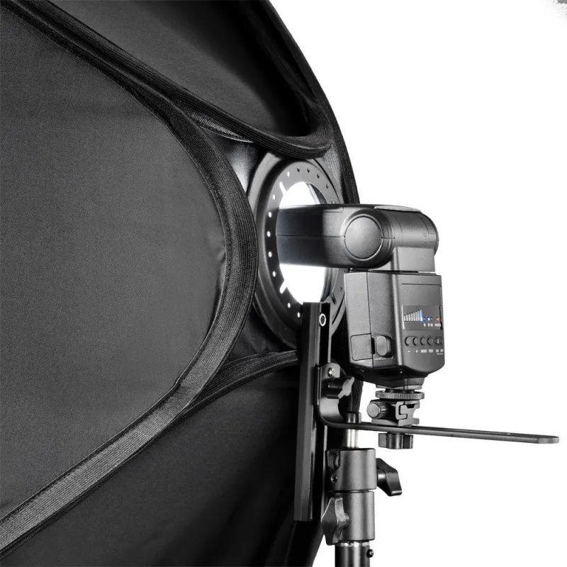 90x90 cm softbokss izmantošanai gan ar studijas zibspuldzēm, gan kameras ārējām zibspuldzēm
