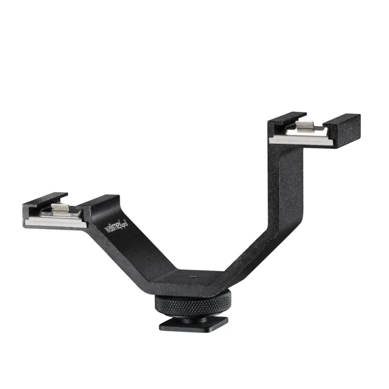 The V-Rail is an innovative, v-shaped flash slide rail. Two connectors for additional camera accessories ensure that equipment such as microphones, on-camera lamps, bubble levels or additional system flashes can be connected up securely with the camera without taking up too much space. The V-rail is suitable for all photo and video cameras with a hot shoe.