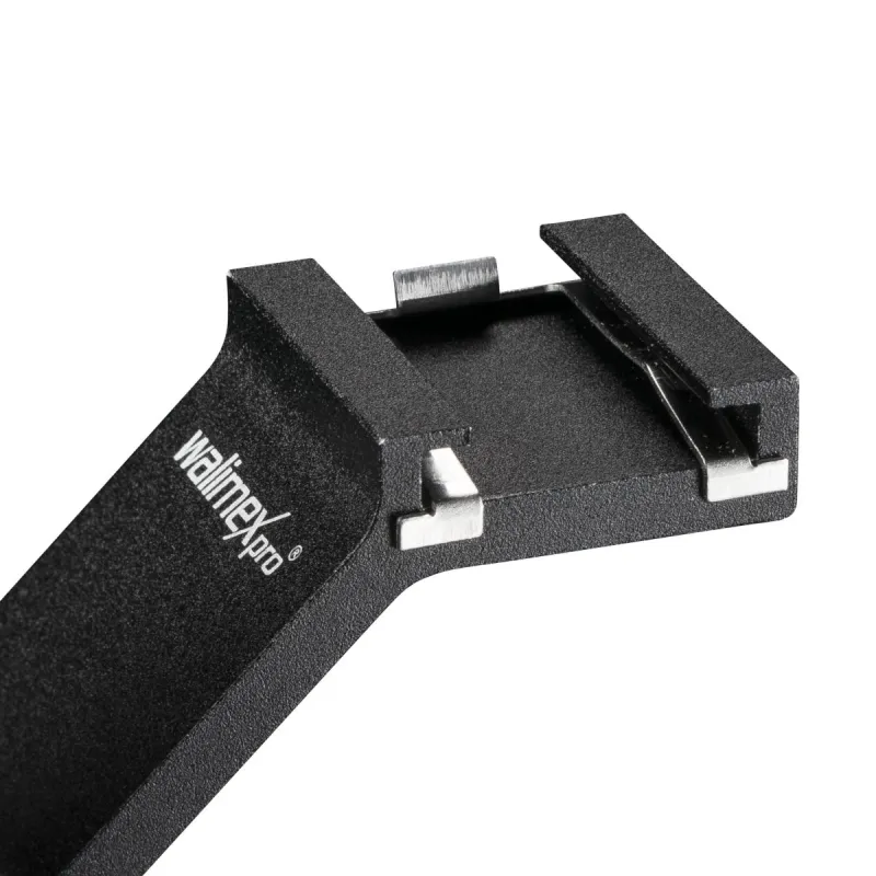 An additional metal spring attaches the accessory to the hot shoe and ensures that it is securely and firmly fixed.