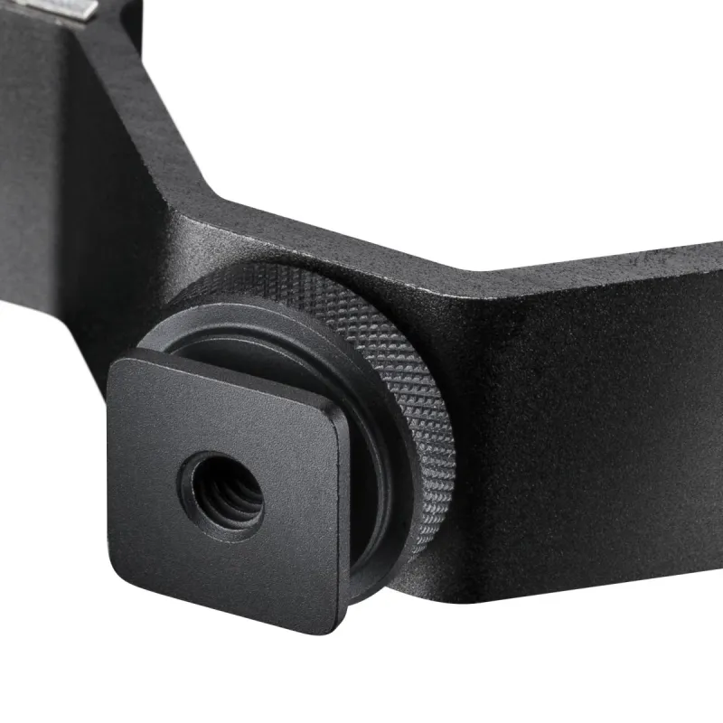 The shoe slide rail is made from high-quality, anodised aluminium to ensure it is extremely shock-proof and scratch-resistant. The rail is held in place on the hot shoe with a screw.