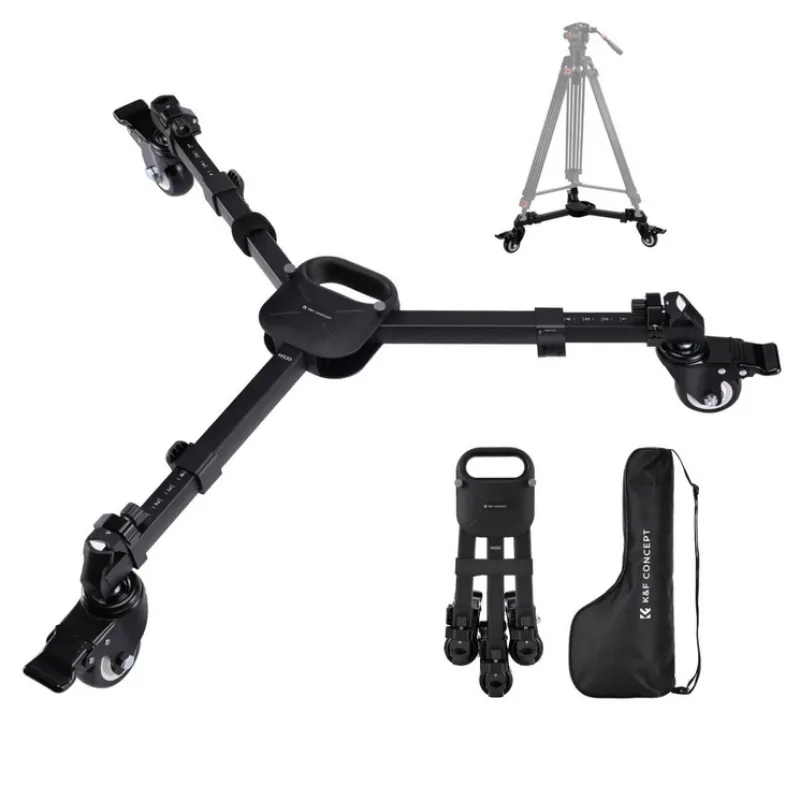 K&F Photography Tripod Dolly - это надежный аксессуар, разработанный дл профессиональных фотографов и видеографов, обеспечивающий стабильность и мобильность во врем съемок. С грузоподъемностью 44 фунта, он оснащен регулируемыми ногами, прочной алюминиевой конструкцией и плавными, бесшумными колесами дл удобной съемки.