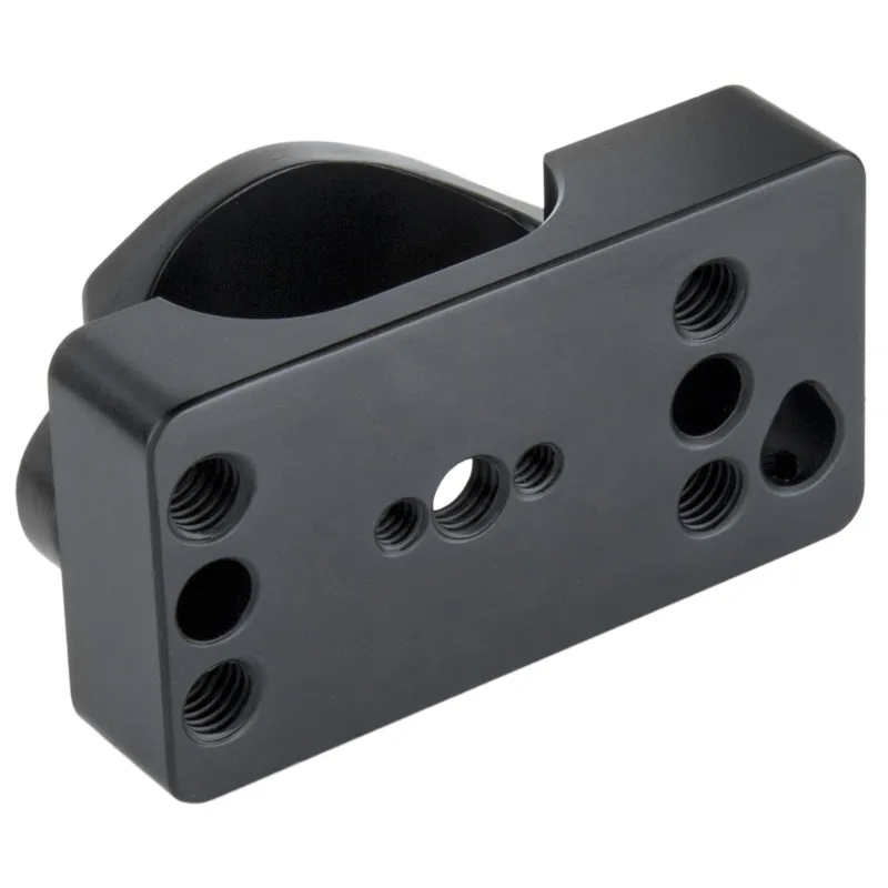Этот адаптер, изготовленный из алюмини, предназначен дл креплени зонта на верхней опорной планке, чтобы защитить оператора камеры от дожд и солнечного света. Он также обеспечивает тень дл просмотра монитора.