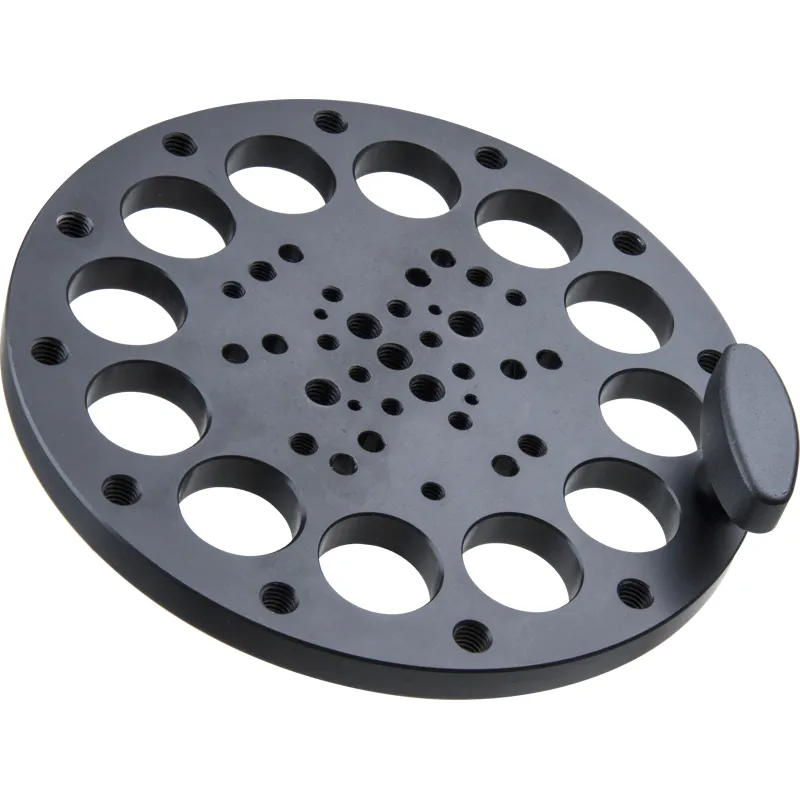 Зажим обеспечивает жесткое крепление как с левой, так и с правой стороны, позвол оператору быстро изменть настройки на лету, если это необходимо. Адаптер Mitchell и простой фиксатор поставлютс дл установки оборудовани Steadicam на плиту Mitchell, прикрепл монтажную плиту с помощью 2 x 1/4-20 винтов, входщих в комплект. Ручка с болтом 3/8-16 оснащена адаптером в качестве ключа Mitchell, предлага быструю регулировку панорамы при необходимости.