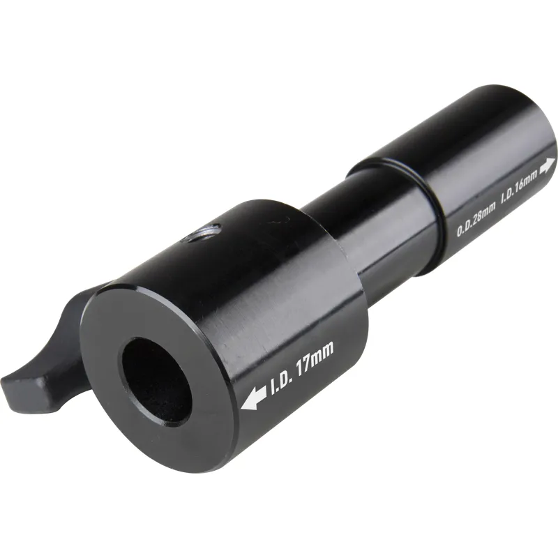 Это самый универсальный адаптер из всех. Внешний диаметр (28 мм спигот) подходит дл юниорного приемника, в то врем как внутренние диаметры (16 мм и 17 мм на каждом конце) подходт дл детского пина. Кроме того, есть резьбовое отверстие дл перемещени установочных винтов, когда они не используютс.