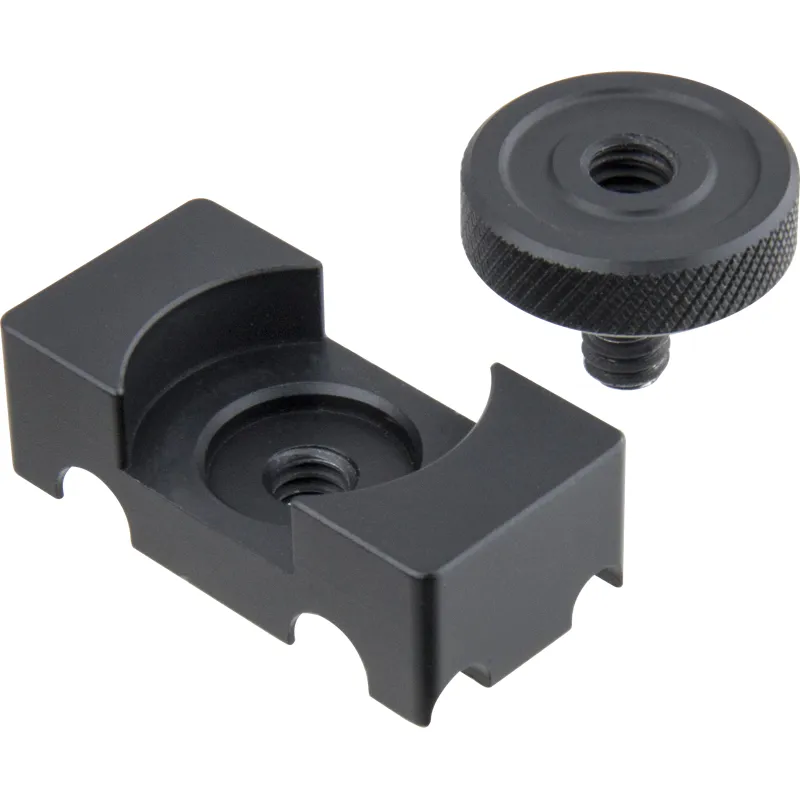 Изготовленный из алюминиевого сплава с черным анодированным покрытием, адаптер дл креплени кабел имеет канавки на верхней части, предназначенные дл креплени кабелей, чтобы предотвратить повреждение порта данных камеры. Он оснащен винтом 1/4-20 на верхней части дл креплени этого адаптера на камере и отверстием дл винта 1/4-20 внизу дл подключени к быстросъемной пластине штатива.