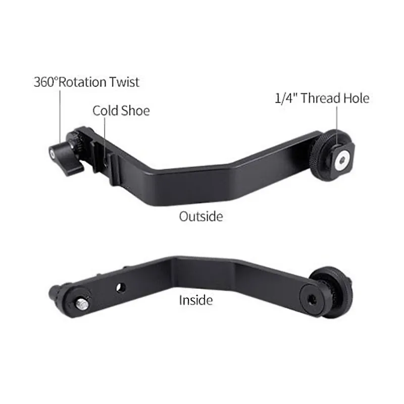 The Feelworld Monitor Tilt Arm for 7" Monitor is a tilt arm for monitors with a screen diameter up to 7 inches, such as the FW278S and LUT7S. Attach your field monitor to the arm and place it directly on your camera and adjust the tilt angle to your liking. The tilt arm has an extra cold shoe on the side for a microphone or other accessory.