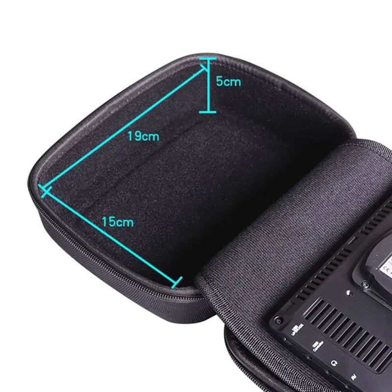 This Feelworld Bag protective hard case is designed for the safe transport and storage of a 7 inch field monitor. The lid is equipped with a zippered mesh pocket for storing small accessories and cables. The shockproof and dustproof case closes with a zip and offers all-round protection. The sturdy exterior is made of water-repellent EVA. The bag is carried by the handy handstrap.