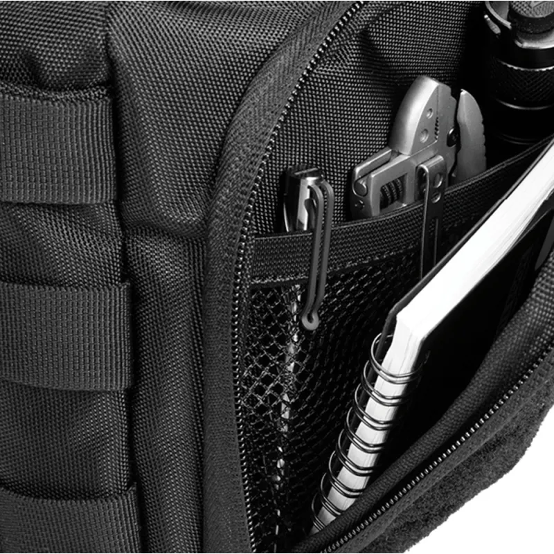 The Nitecore NEB20 Commuter Bag is the ideal bag for the real commuter. The bag is dirt- and water-repellent and, thanks to the Molle carry system, expandable with all kinds of extra compartments.  The bag has several pockets, in which you can put all your accessories. The main compartment is fully opening and designed for quick access. The front of the commuter bag has two compartments. These compartments have a mesh pocket with zip. Ideal for storing small items. The bag is made of impregnated durable 1050D nylon, which makes it durable, lightweight and water- and dirt-repellent. All this without compromising on strength and durability.