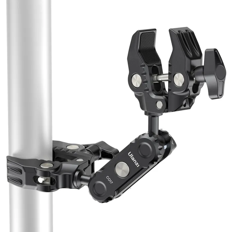 The versatile Ulanzi CO17 Super Clamp With Dual Ballhead Magic Arm easily attaches to motorbikes, bikes, tripods, tables, and more. Its non-slip design ensures a firm grip on surfaces from 1.19 cm to 5.79 cm wide. Made of lightweight but durable aluminum alloy, it is perfect for travel and everyday use.