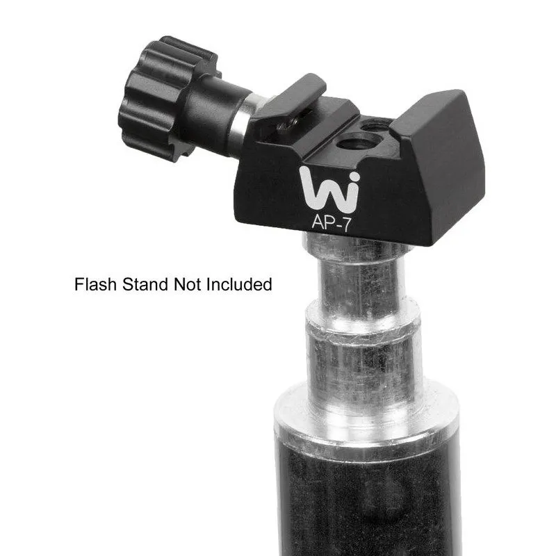 The AP-7 is a Universal Flash Adapter which securely holds most flashes, shoe cords or shoe adapters attached to other devices. It was designed to mount natively into the M-3 recessed mount portion of our flash brackets.