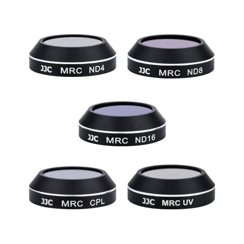 The JJC Digital Filter for DJIMAVIC PRO is a kit consisting of 5 filters. These five filters are a ND4, ND8, ND16, UV and CPL.