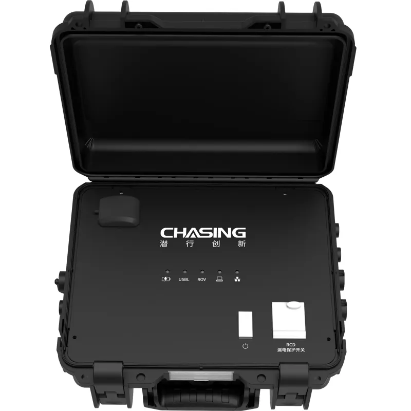 After connecting to the AC power supply system and the USBL underwater positioning system, CHASING Adapter Box can convert AC and sonar signals into forms usable by the ROV to achieve unlimited battery life and positioning functions.