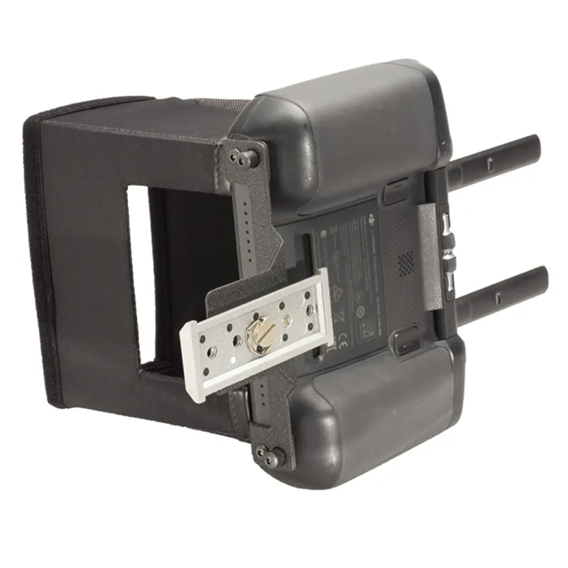 The Hoodman Drone Controller Support Belt with DJI Smart Controller Mount Kit provides a hands-free way to carry your drone's transmitter (radio controller). The strap is equipped with a custom mounting interface that is compatible with DJI controllers.