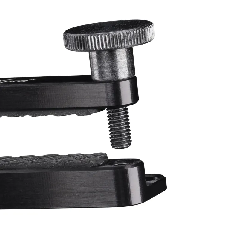 Defective jacks and cable connections are things of days gone by. No matter whether USB, flash synchronization or HDMI connections: The Cable Protection protects these highly sensitive areas against defects caused by pulling the cable. One or several cables at a time can be simply routed through and fixed with two knurled screws. Rubber paddings on either side protects the cables against damage. This padding also allows you to fix cables of different thicknesses. With two 1/4 inch screws the cable protection can be flexibly fastened on the Cage. Just like all accessory parts of the Aptaris system, this cable protection has also been developed and made in Germany. It is characterized by its outstanding workmanship. Extremely light and long lasting aircraft aluminium is also used for this product.
