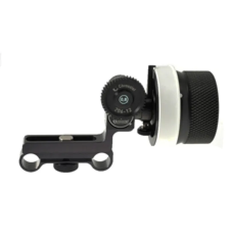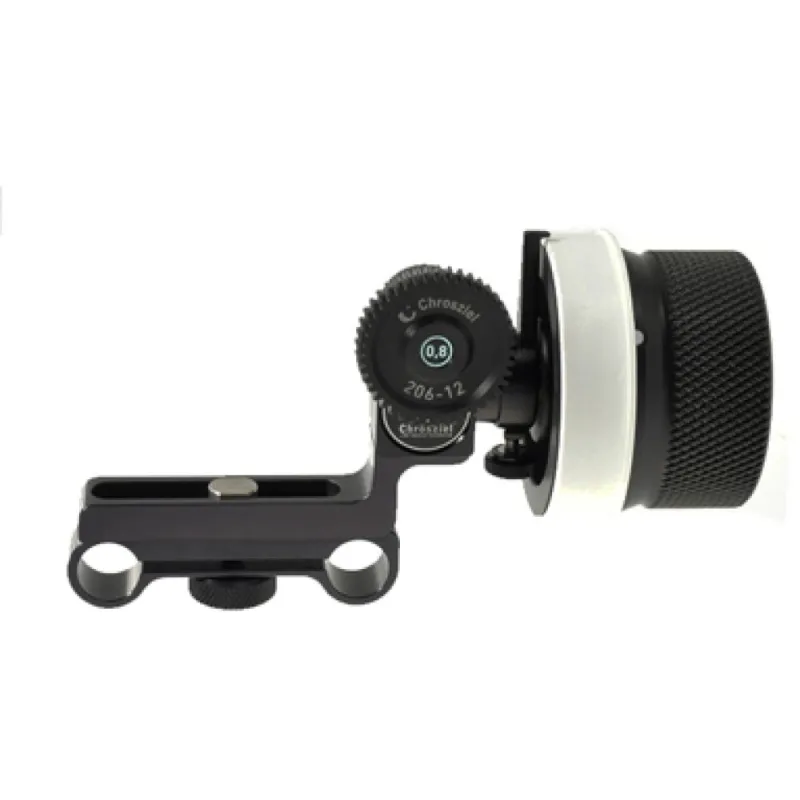 The Chrosziel DV Studio Rig is a follow focus ring kit; it fits on the light weight support system rods and is designed as one complete unit with a fixed handwheel for one side operation. Specially designed for DV cameras - small and lightweight. DV-Studio rig can be used for lenses equipped with a gear ring.