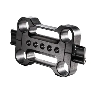 The Aptaris Double Clamp convinces with its double function: You can on the one hand flexibly adapt the position of your shoulder support and offset your camera upwards or downwards, as required. In connection with the shoulder module it is thus possible to work with no offset between camera and shoulder module, but on one axis. On the other hand you can fasten a second pair of Rods to compensate for height differences between Rig and lens and to e.g. use a Follow Focus even on cameras, which have the lens mounted in a higher position. The clamp is compatible with 155mm Rods and can therefore be used with most Rigs. Another convenience are the ј inch threads, which can be used to mount additional accessories. The Double Clamp is, like all other accessory parts of the Aptaris system, obviously also made in Germany.