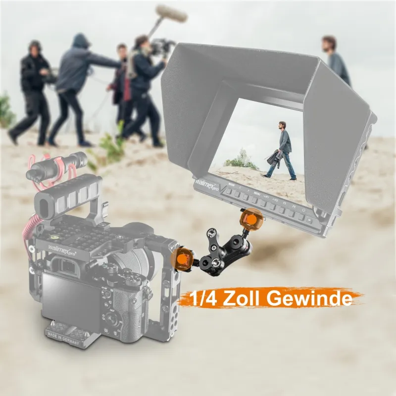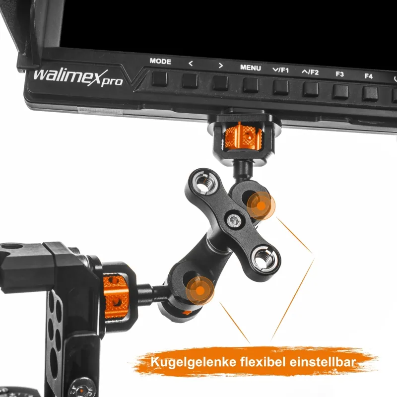 The Mini Magic Arm Premium also offers flexibility in use: It is ideal for use with DSLR cages, rigs and dollies. You can use it to mount video accessories such as video lights (LED), monitors, audio equipment or recorders on your cage, rig or dolly. Thanks to its load capacity of up to 3 kg, it is also ideal for medium-heavy accessories.