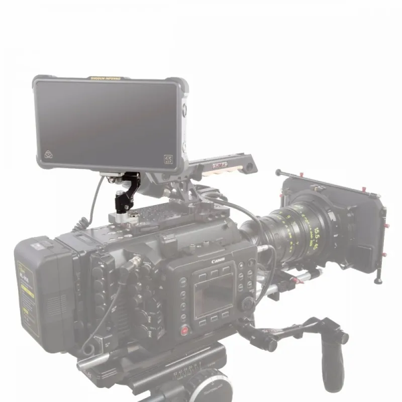 The arm can be used for supporting accessories such as a monitor, a view finder, a microphone, a camera light, etc. The 1/4-20 screw is mounted with a ‘bracket’ to manually fix the accessories to the arm without a tool.