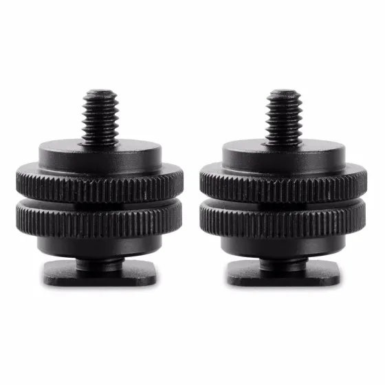 The Hot Shoe Adapter 3/8" to 1/4" is part of the CoolArm11, and may be used to mount an accessory with 1/4" socket to the hot shoe of a camera. The thread is 3/8" to 1/4": the thread top part is 1/4" , bottom part is 3/8". Includes: 2x Shoe Mount Adapter Material: Aluminum Alloy Net Weight: 60g