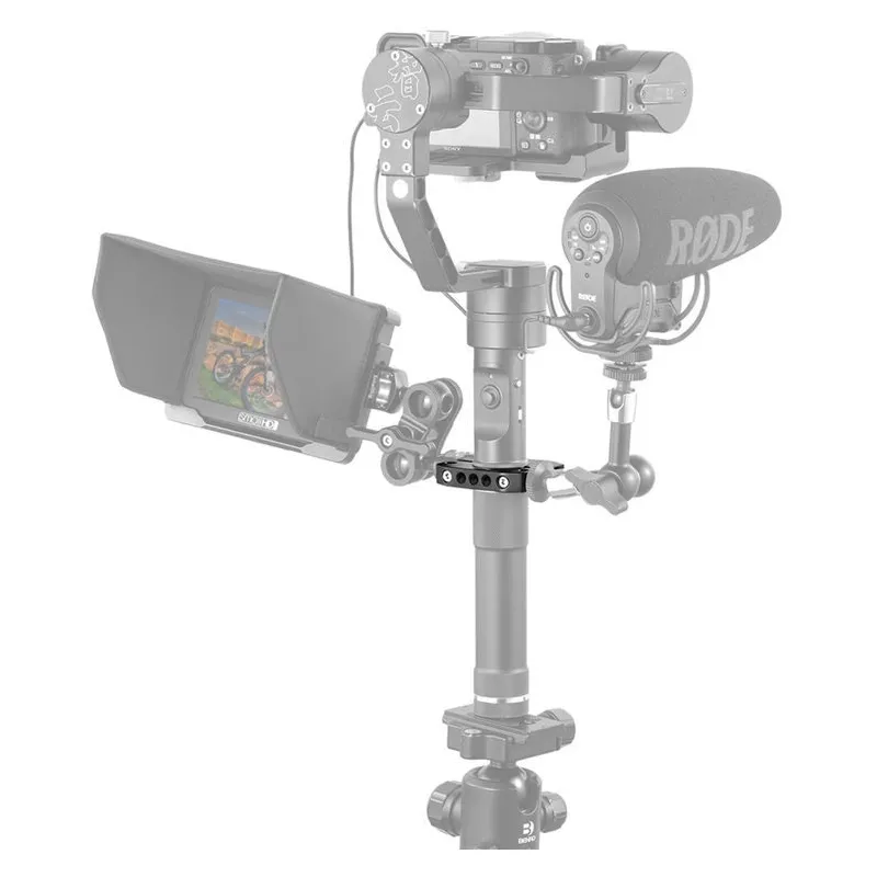 SmallRig 2170 Rod Clamp for Crane V2/ Plus The SmallRig 2170 Rod Clamp for Zhiyun Crane V2 / Crane Plus is designed to provide multiple mounting options for Zhiyun users. This clamp can be attached to three positions of Zhiyun Crane V2 / Plus handle by two M4 screws. It features multiple 1/4 20 and arri 3/8 16 holes for accessory attachment such as magic arm and cold shoe for monitor and microphone mount etc. It allows mounting a tripod plate by using the bottom 1/4 20 threaded hole on Zhiyun Stabilizers and the bottom 1/4 20 threaded hole on the clamp together. Optional Nato Rail 1195 and Nato Top Handle 1688 allows for handheld shooting. ,